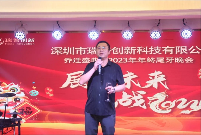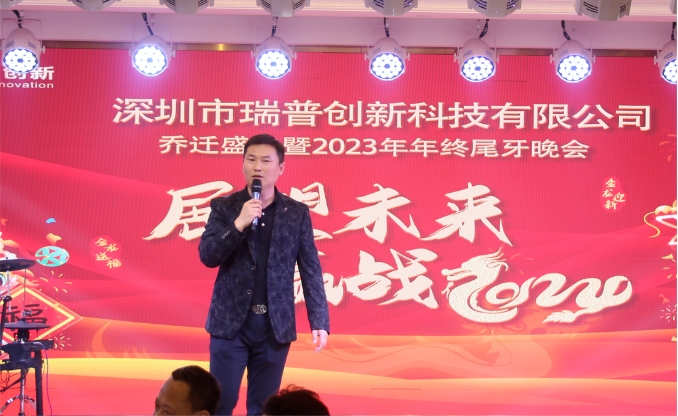 当天晚上,瑞普创新还举办了乔迁盛典暨2023年年终尾牙晚会,董事长张洋、 总经理王哲携全体员工,与各界朋友们齐聚一堂,共同奏响2024年的激情序曲。董事长张洋、 总经理王哲回顾了瑞普创新的一路走来的风雨历程,并对多年来一路支持的供应商朋友、客户朋友、媒体朋友表示感谢。