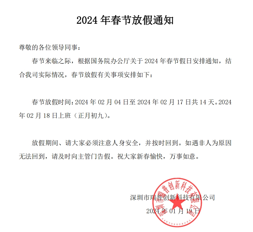 春节来临之际,根据国务院办公厅关于 2024 年春节假日安排通知,结